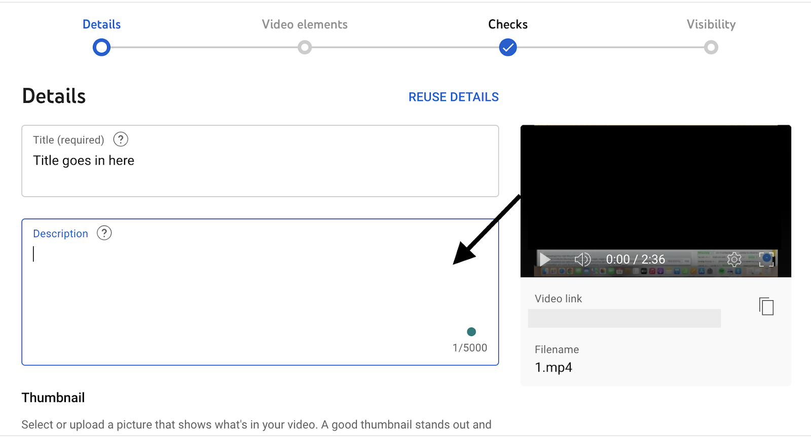 The YouTube video description is a great place for adding links to your products, social media profiles, and website. You can find the description below your YouTube video title.