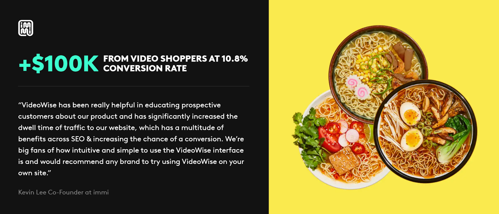 Brands like Immi use Videowise to add clickable links to their videos, and they get impressive results. Learn more about Videowise by viewing our pricing page or scheduling a demo.