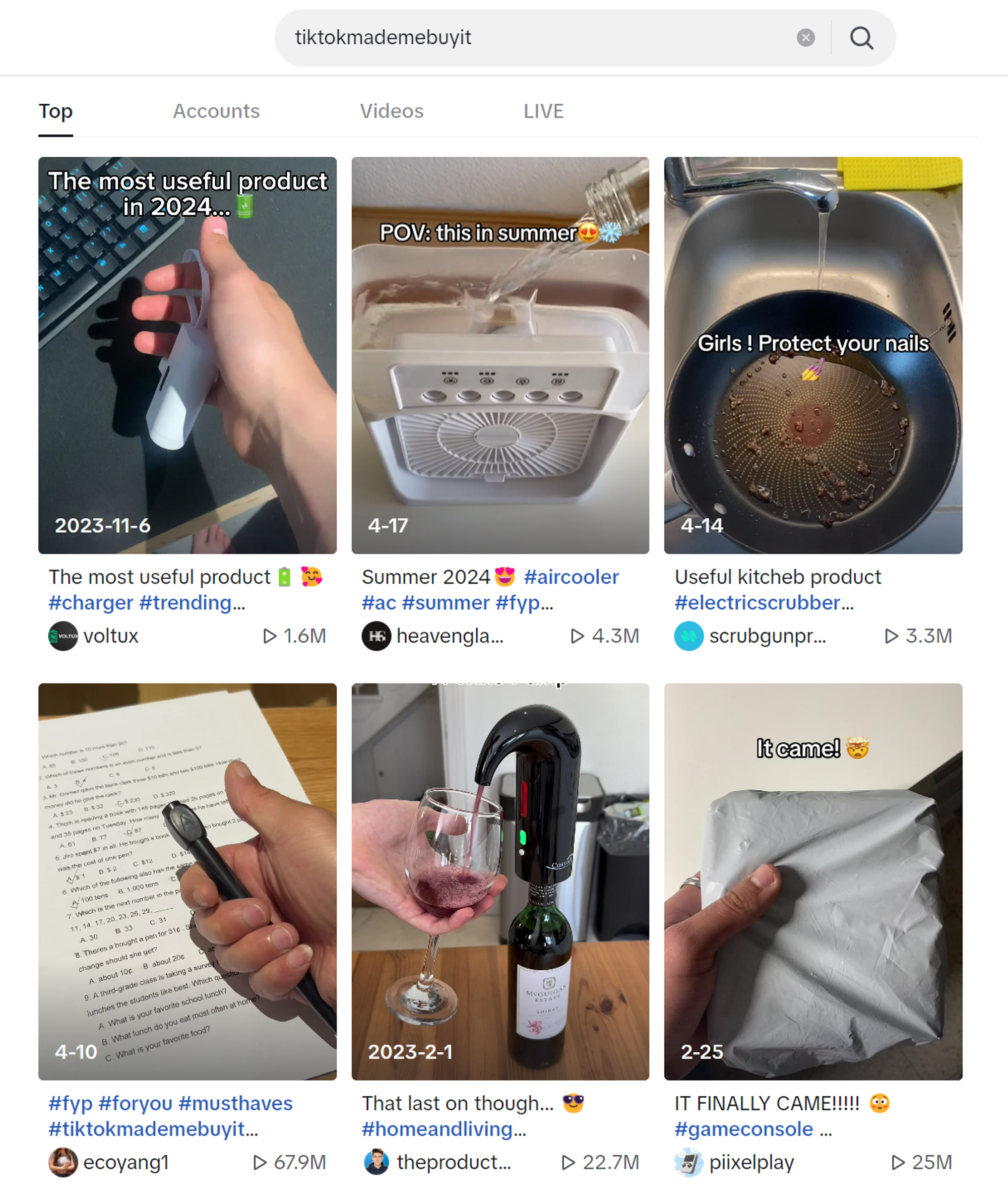 For example, one of the trending hashtags on the platform is #TikTokMadeMeBuyIt, with the top featured reels individually gathering between 1.5 to 67 million views. Another one is #fyp (for your page), which has over 55 trillion views.