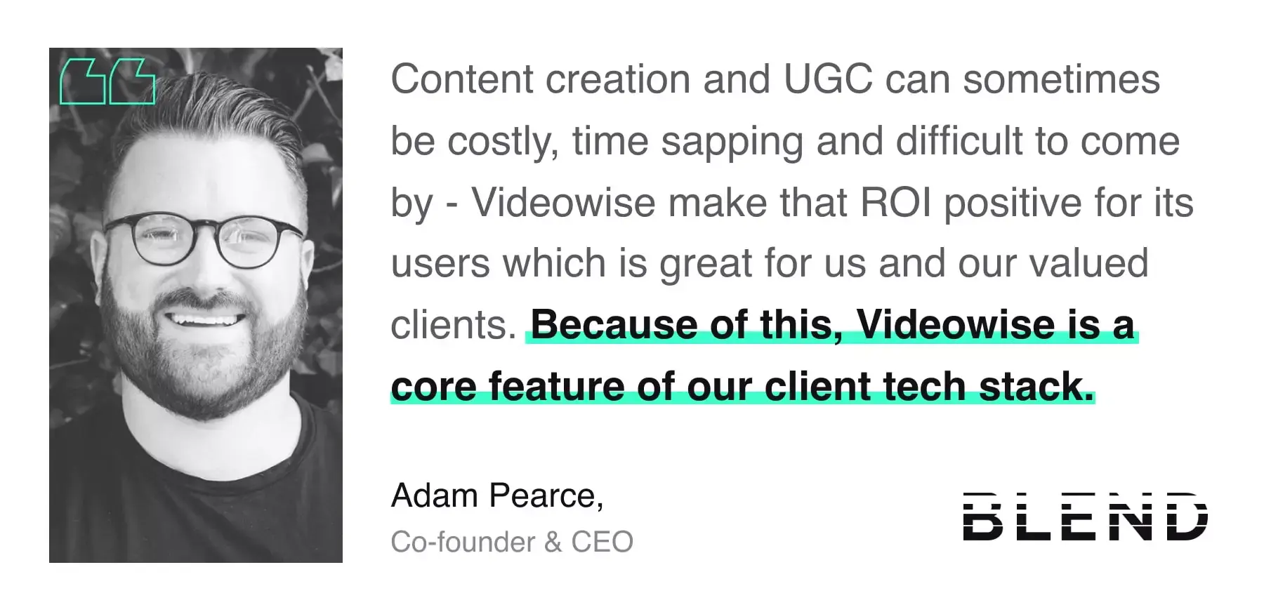 "eCommerce brands have faced a lot more competition in the past two years - which means as an agency. We need tools that will help them set themselves apart from the competition. Videowise does a great job of this, as store visitors don’t often see real customers on video using products - especially on product pages. Customers have less patience with brands than they used, so it’s critical to give them what they want and need when they want it,” says Adam Pearce, Co-founder and CEO of Blend.