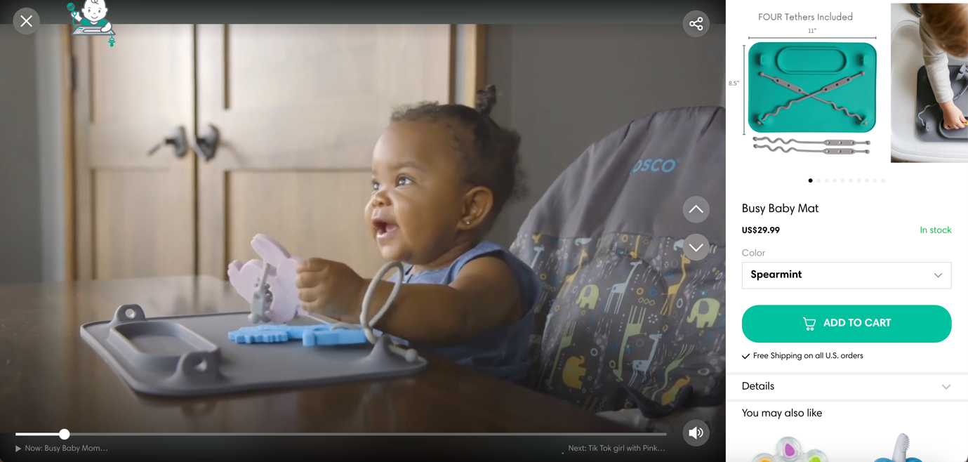 Take the example of Busy Baby Mat, an eCommerce store that saw a 11.49% conversion rate from shoppable video content created through Videowise.