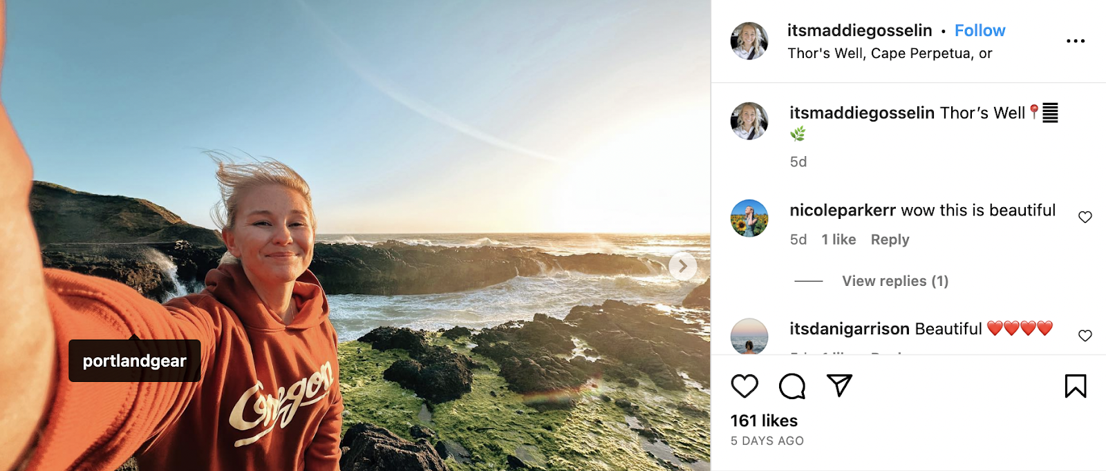 I just found Maddie, a digital creator, through the tagged photos of Portland Gear.