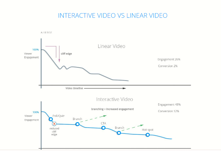 Several statistics show videos are more compelling and engaging than static content. Among others, Videos get 1200% more shares than text and images combined and improve brand recall by 95% compared to 10% when reading the text. Interactive videos take this engagement to the next level.