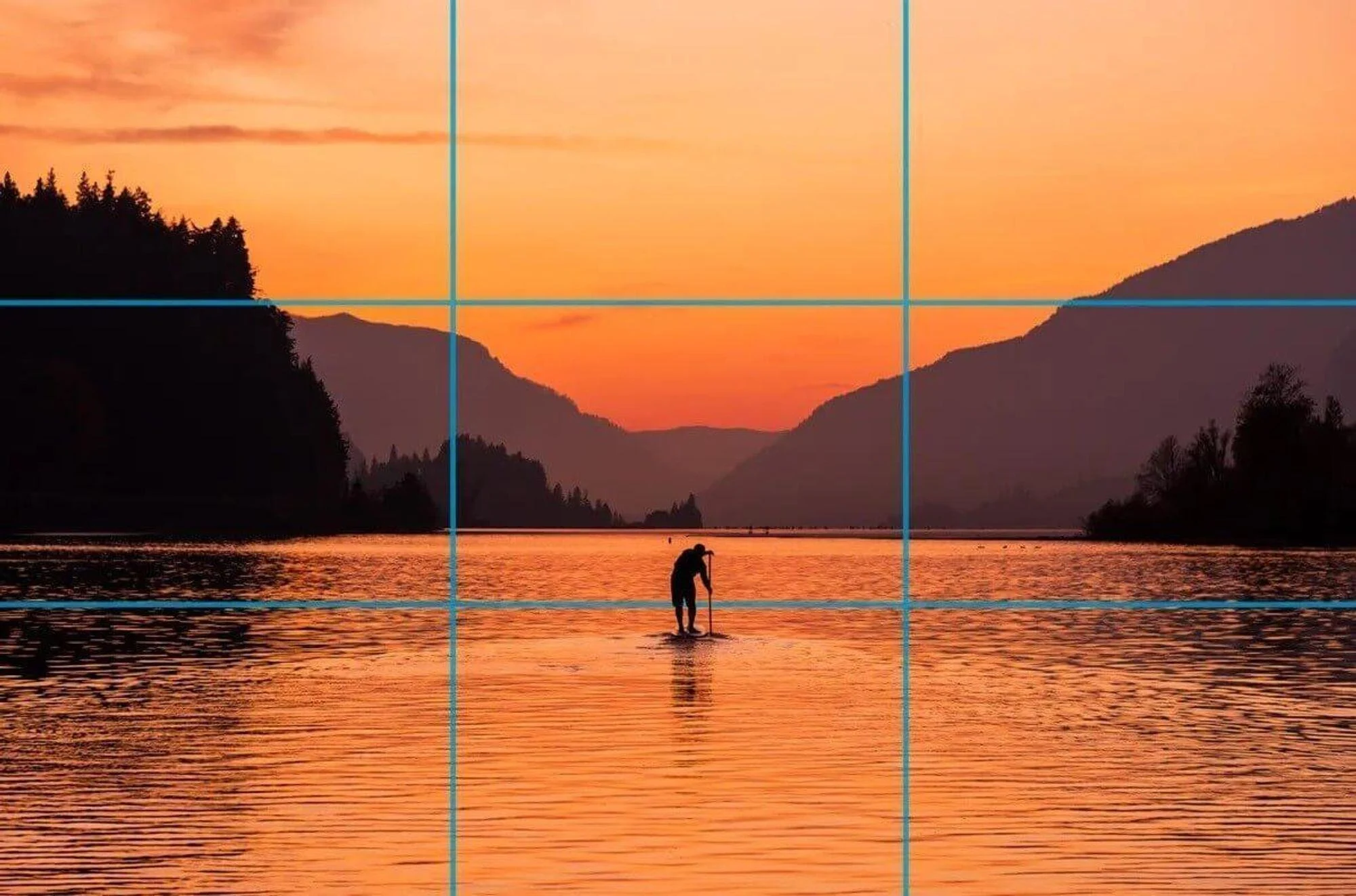 Essentially, you use imaginary horizontal and vertical lines to divide your frame into nine equal sections. Then, you place the subject (your product/characters) on those lines or at their intersection. Here’s a snapshot to help you reference how the concept works.