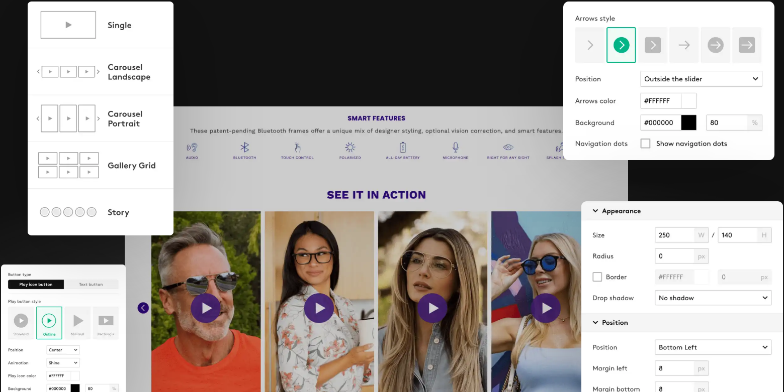 With Videowise, you can easily add shoppable videos to any page of your website and leverage features such as multiple video components on any page, automated product-video matching, and a mobile-first swipe-up experience.