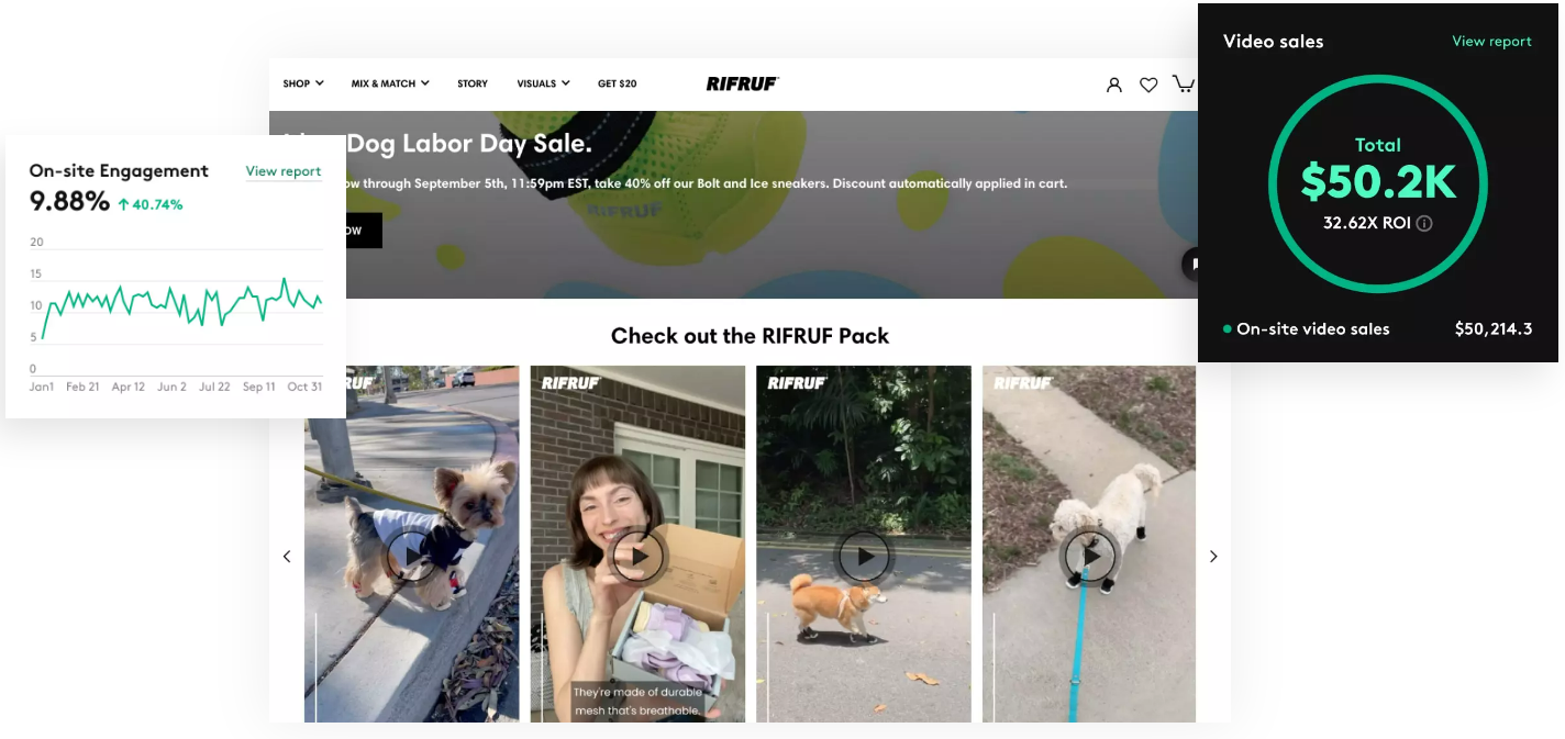 RIFRUF designs and sells unique and functional dog shoes. But the real challenge was connecting the customers to their products and explaining the "why" behind them. So, instead of doing all the talking, they turned to Videowise and started implementing shoppable videos on different pages of their online store, including the homepage, product pages, and story pages.
