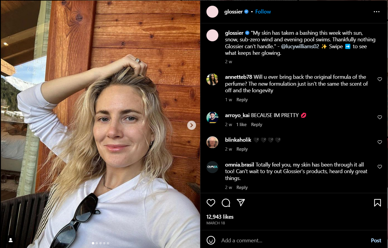 So, by combining the power of UGC and shoppable media, you can create a highly engaging user experience for your potential customers that drives sales, just like Glossier did. Here is what their post looks like: