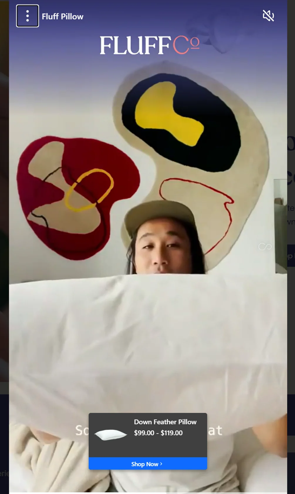 FluffCo’s shoppable ad for pillows demonstrates this perfectly. It’s a video review from a happy customer with a simple overlay.
