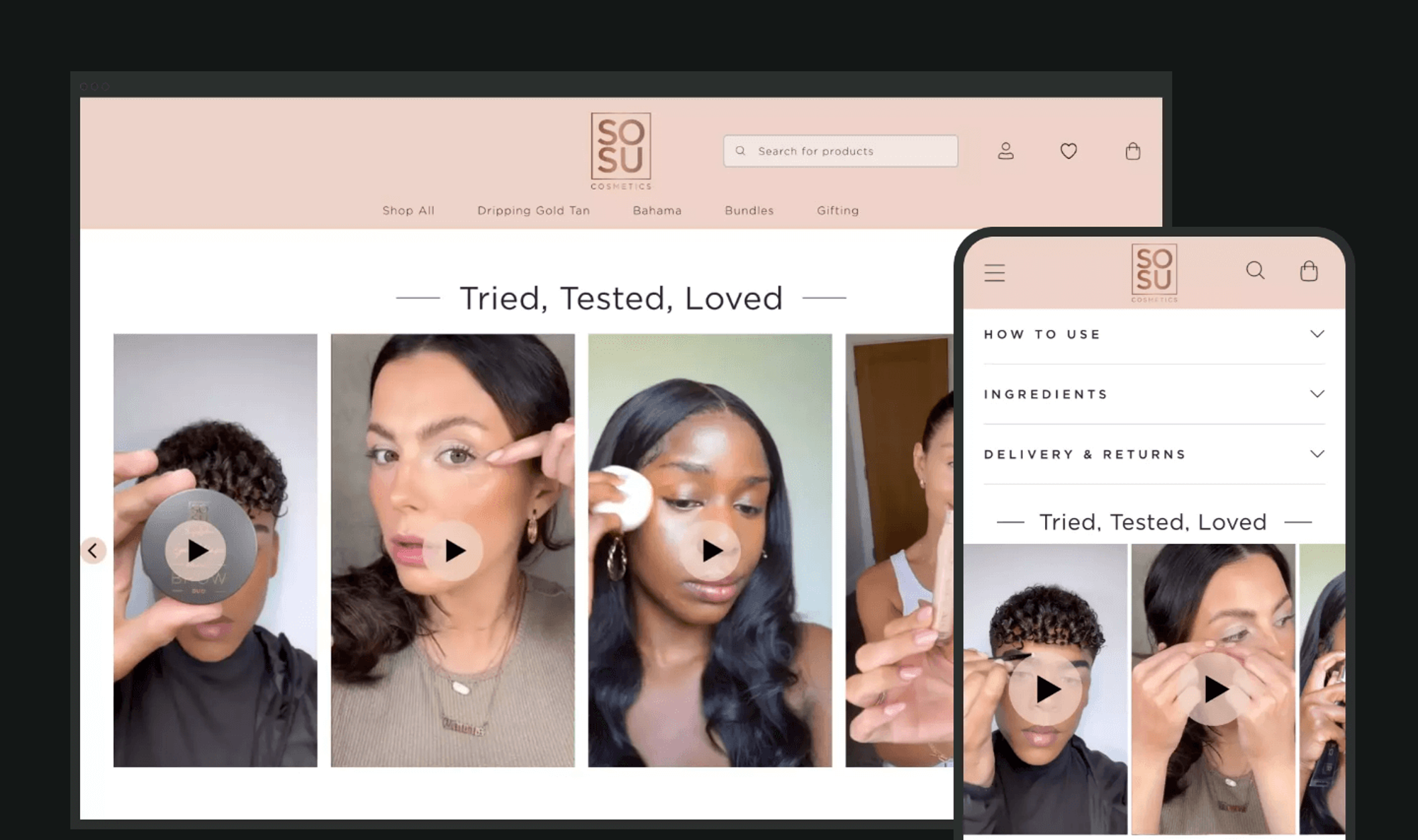 One specific brand that leveraged all of the above is SOSU Cosmetics. From shoppable eCommerce videos to on-store user-generated clips, their on-page content received a complete makeover.