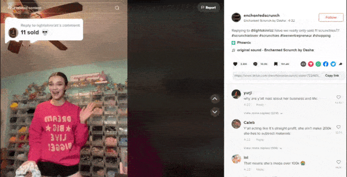 For example, Dasha Derkach, the teenage owner of the Enchanted Scrunch, a hair scrunchie business, posted a video in December 2021 showing her organizing scrunchies on a display wall. It went wild on TikTok.