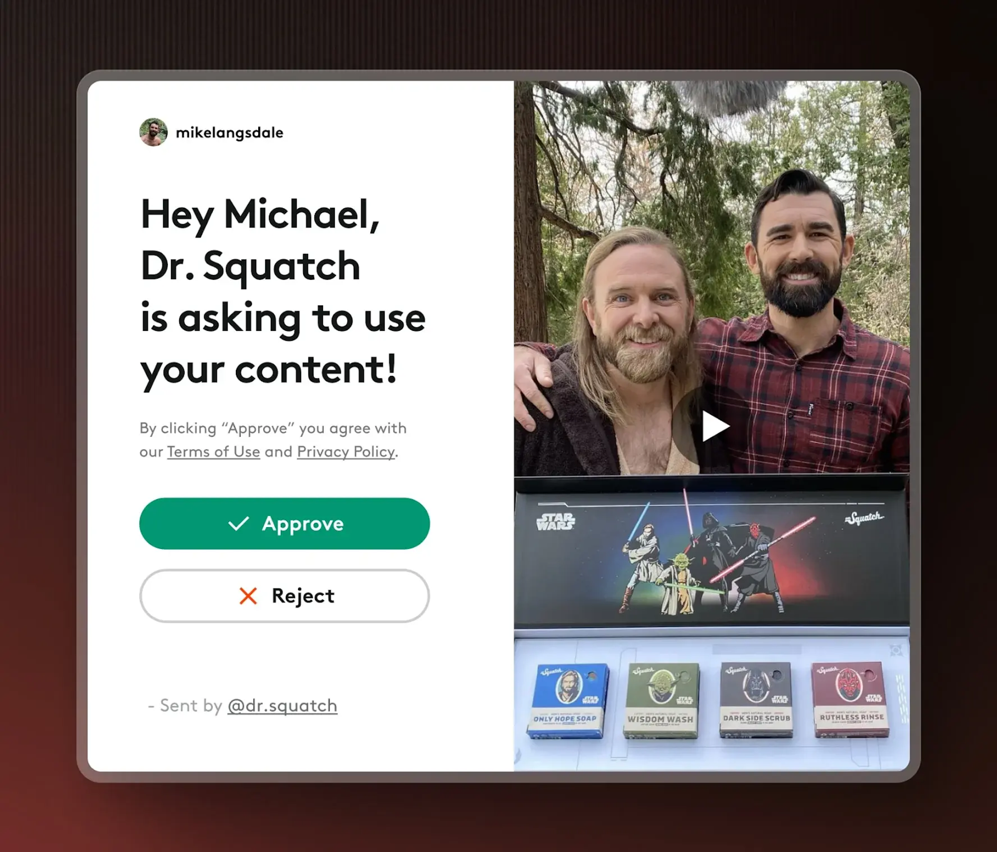Request and manage usage rights directly using Videowise. You can send collaboration requests to Instagram and TikTok creators. And appprove requests within the app to avoid lengthy back-and-forth communication.