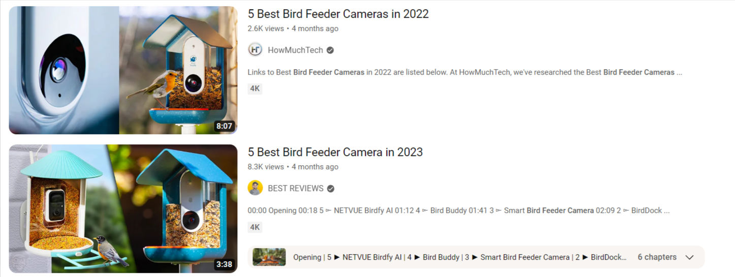 For comparison, a keyword like “bird feeder camera” has a stronger purchase intent to it: