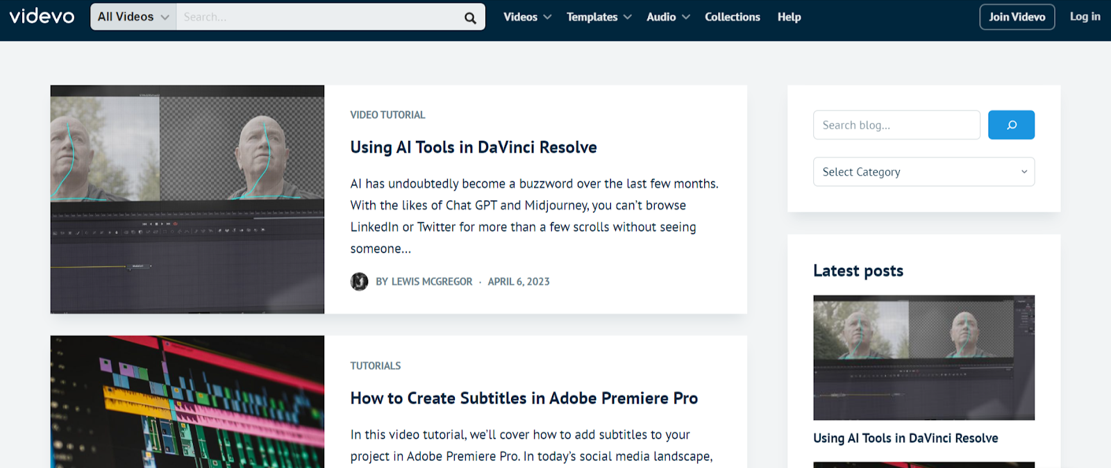 What to expect: Videvo commonly taps into tutorials for popular video creation tools as well as the latest trends in video marketing. But you’ll find real value in their content on improving video sound effects and your filming techniques. So if you plan on recording your video, this is the place to check regularly. And, voila! You’re well on your way to becoming a filmmaker.
