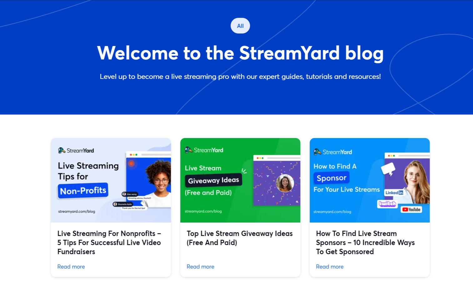 What to expect: Is live-action video hosting and streaming on your radar? The StreamYard blog provides all the guides and tips for you to host pitch-perfect live video events. Their content primarily focuses on the technical aspect of live streaming and video hosting. But you’ll find plenty of handy posts explaining how you can sell more and better showcase your products through live video events.