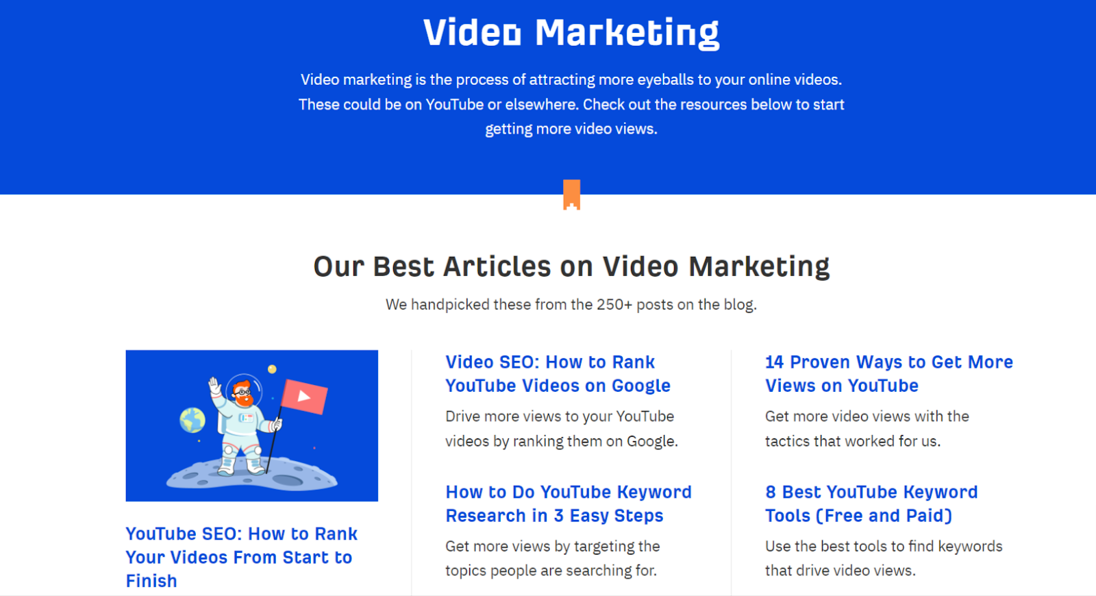 What to expect: SEO is what defines Ahrefs. So you’ll find their blog handy for both your website and video content. Just note that most of their video marketing posts are centered around ranking better on YouTube. Kind of like TubeBuddy’s focus on YouTube SEO [as mentioned above].