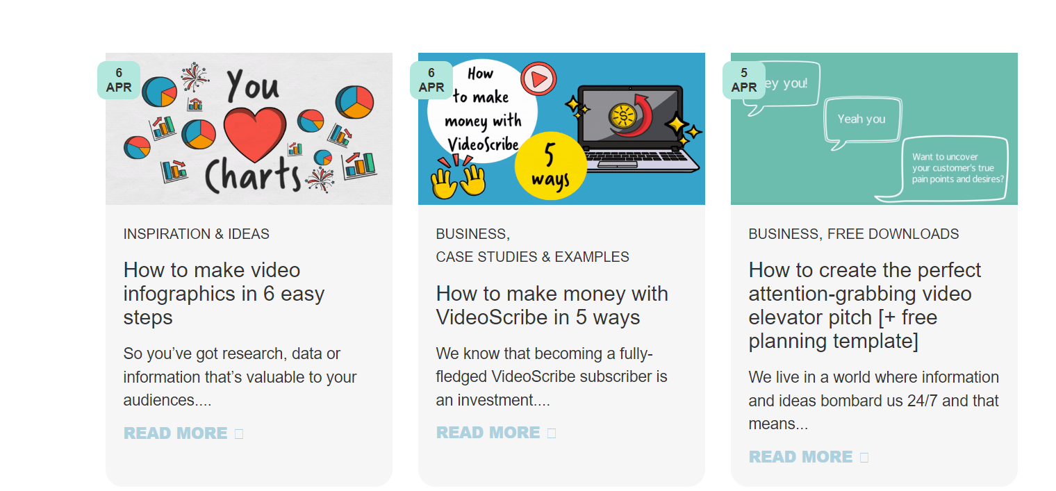 What to expect: VideoScribe’s video marketing blog heavily teaches you how to create an animated explainer video or incorporate animation and sound effects into product clips. I also love their thematic posts like monthly social media calendars and event-related articles.