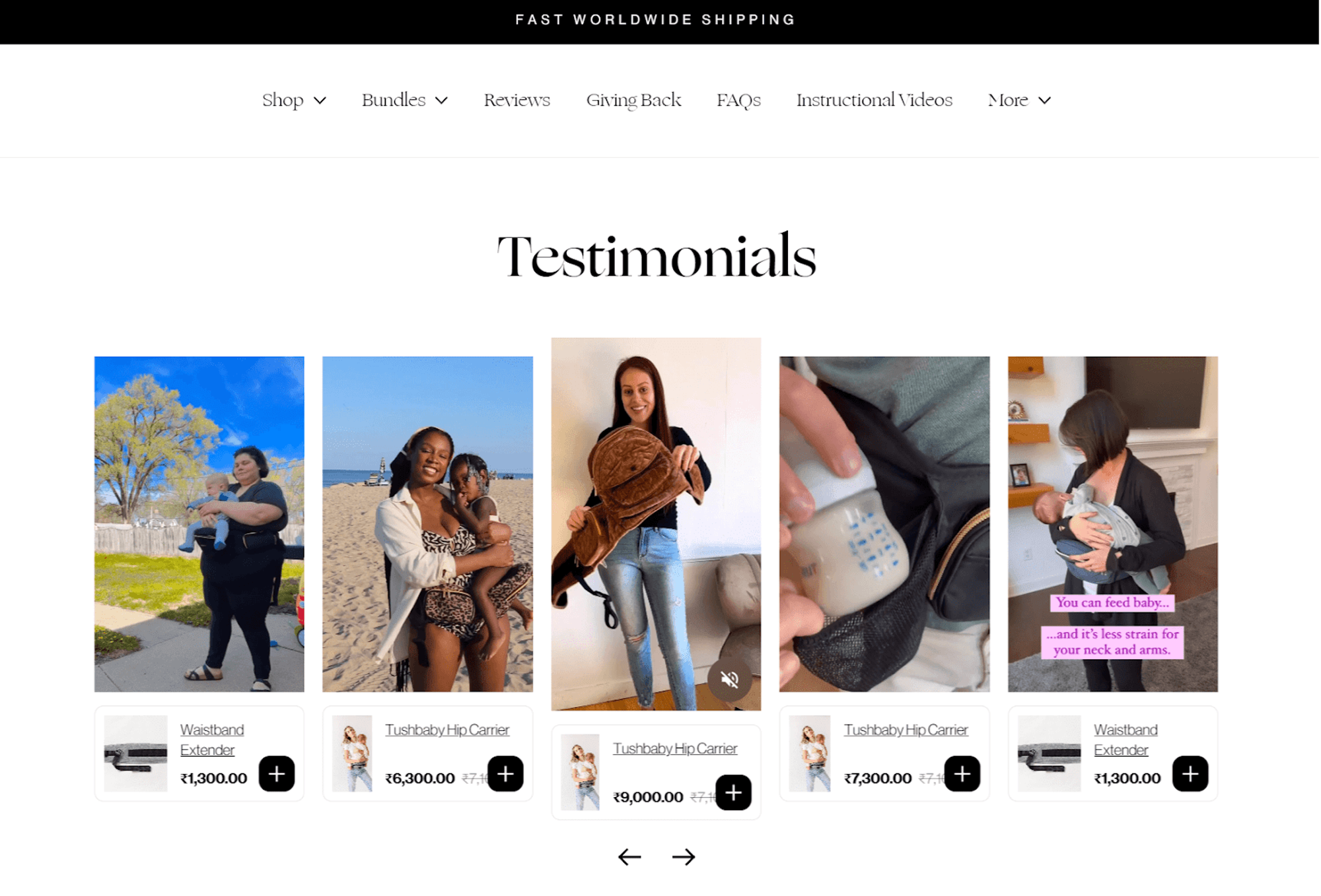 For instance, Tushbaby incorporated shoppable videos on its product pages. The clips are a mix of how-to guides and direct promotional material for other related items.