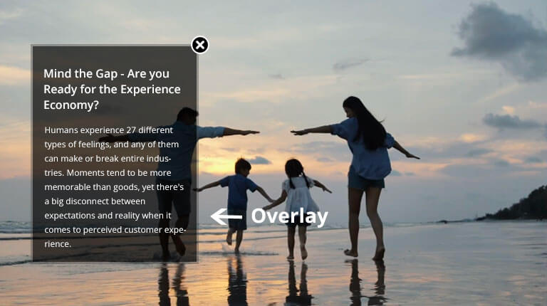 A video that displays after viewers click on a hotspot is also an overlay. Here’s an example of how overlays look: