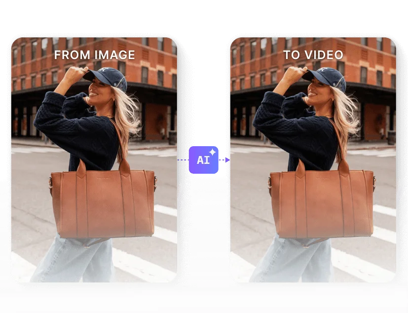 Upload product images and AI Studio turns them into motion videos optimized for ecommerce and ads.